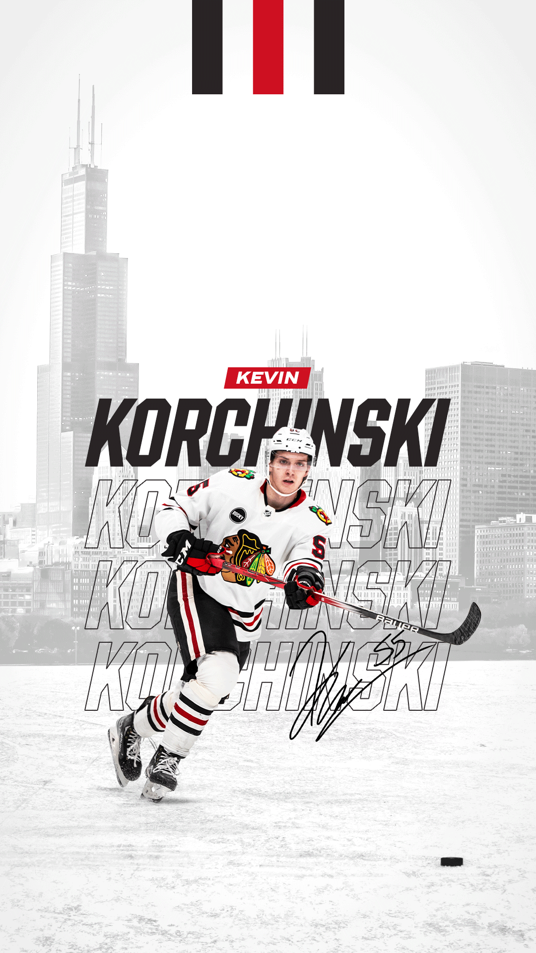 That season introduced a refreshed brand identity, simplifying the color palette to red, black, and white—moving away from the full logo spectrum used in previous years. A new athletic-style font with multiple weights and widths refined the brand’s typography, replacing the broader range of typefaces from past seasons. The design system incorporated bold patterns inspired by the six-pointed star from the Chicago flag and elements of the team’s logos, executed in various thicknesses and color variations. A repeating grid of four stars—paying homage to both the Chicago flag and the Blackhawks’ six Stanley Cup championships—became a key visual element. The team’s iconic jersey stripes remained central to the aesthetic, complemented by strong color blocking and layered design elements. Large-scale player photography and city imagery further reinforced the deep connection between the team, its fans, and Chicago’s hockey legacy.