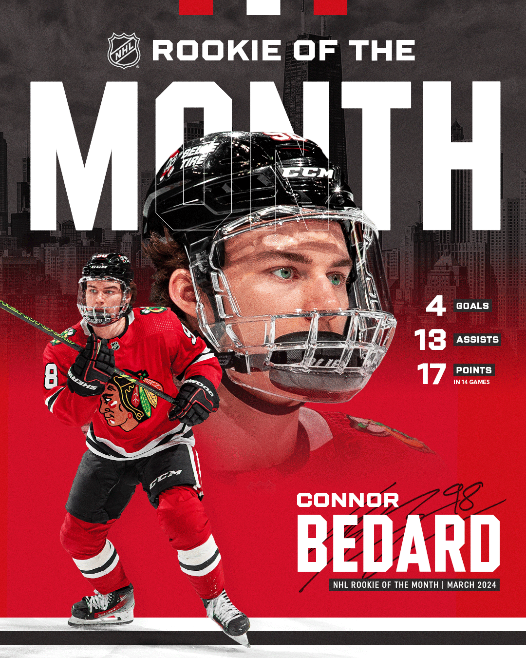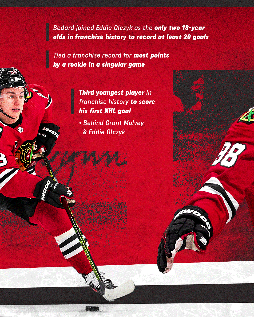 One of the standout pieces, the Connor Bedard Calder Memorial Trophy Winner graphic, became the season’s top-performing Instagram design, generating over 95K likes and nearly 16K shares.