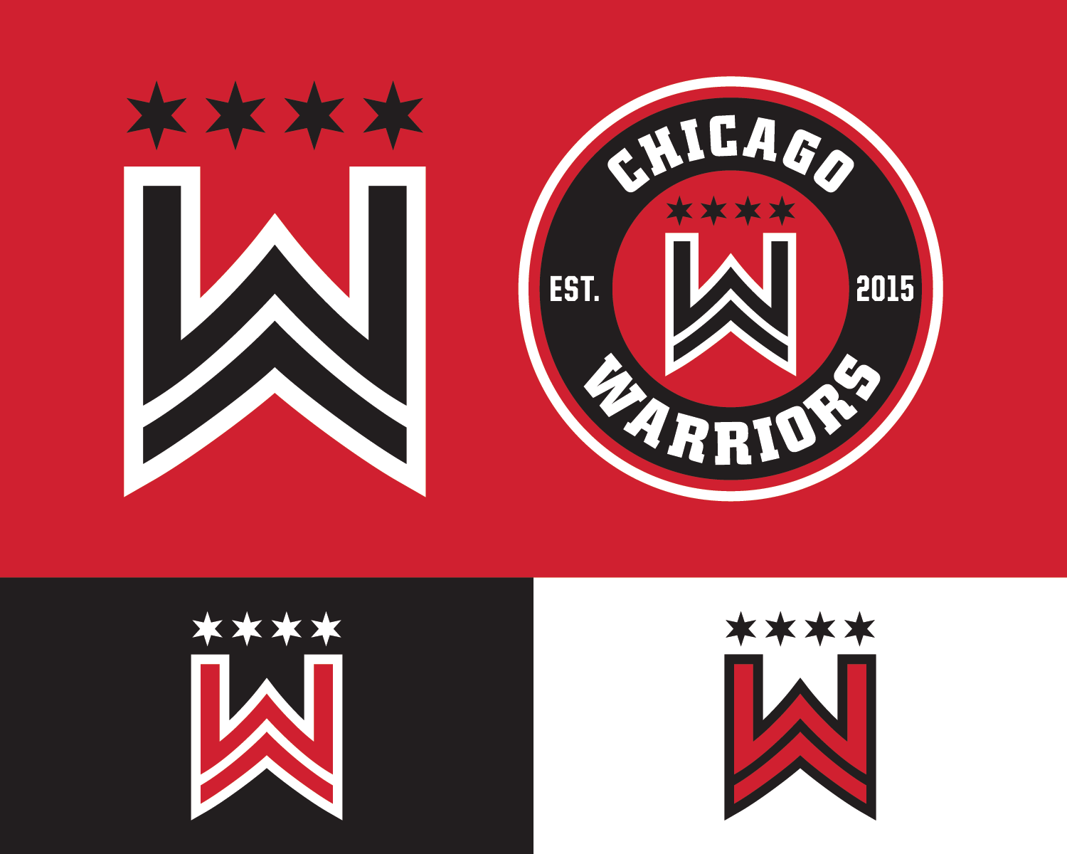 The challenge was designing a logo that represented all branches of the military without relying on clichéd imagery, giving the Warriors a distinct identity. The inspiration came from military rank insignia, which have a similar shape to the letter “W.” I sketched a chevron-style “W” and incorporated four six-pointed stars from the Chicago flag. Together, the elements symbolize “Chicago Warriors,” with the stars representing the city and the W standing for Warriors.